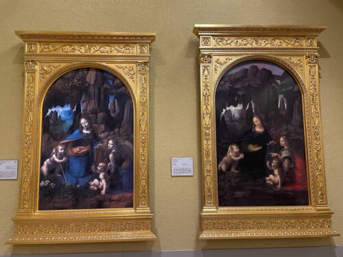 左がロンドン・ナショナル・ギャラリーにあるもの、右がフランス・パリのルーヴル美術館にあるものです。2つの作品がこうして並ぶことはほとんどありません。見られるのはここだけです。